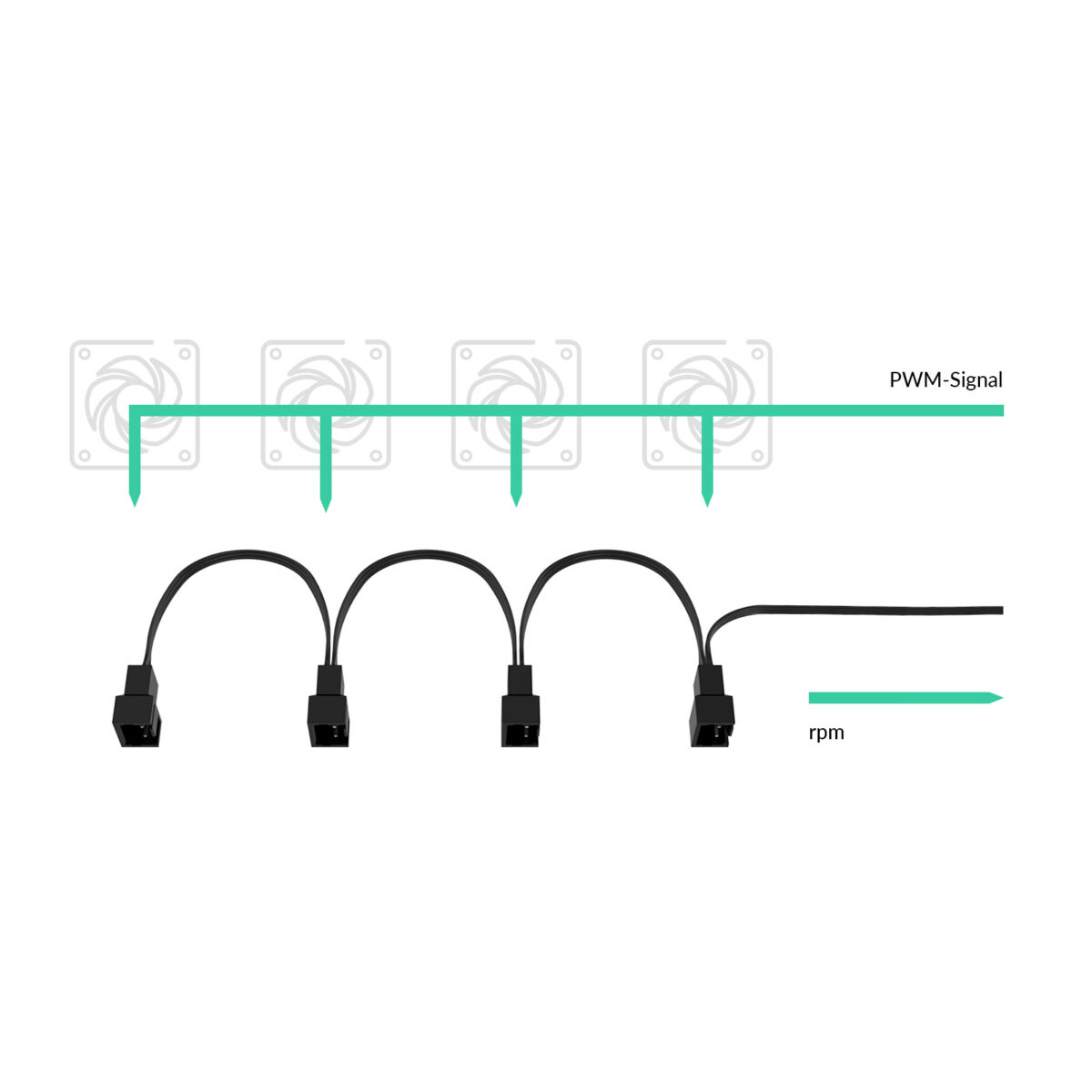 Ένα σημείο επαφής ακροδέκτη με ακροδέκτη μεταφέρει το σήμα και την τροφοδοσία μέσω του συμπλέγματος ανεμιστήρων.